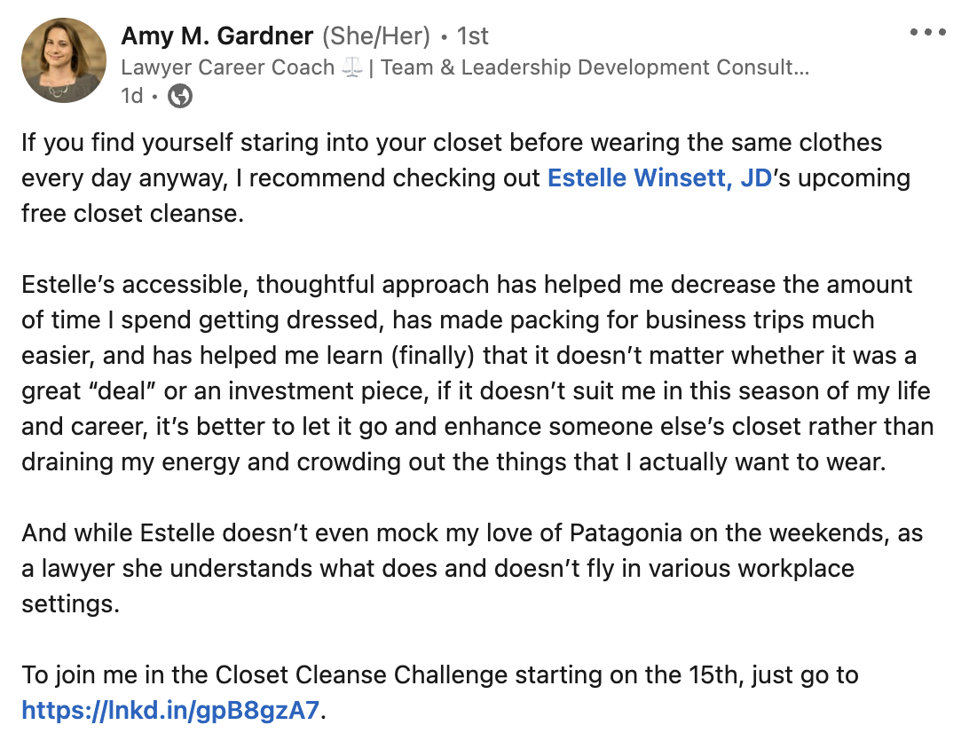 I'm an attorney and personal stylist for successful women who are ready to level up and stand out while still maintaining a professional image. We're talking expert status.